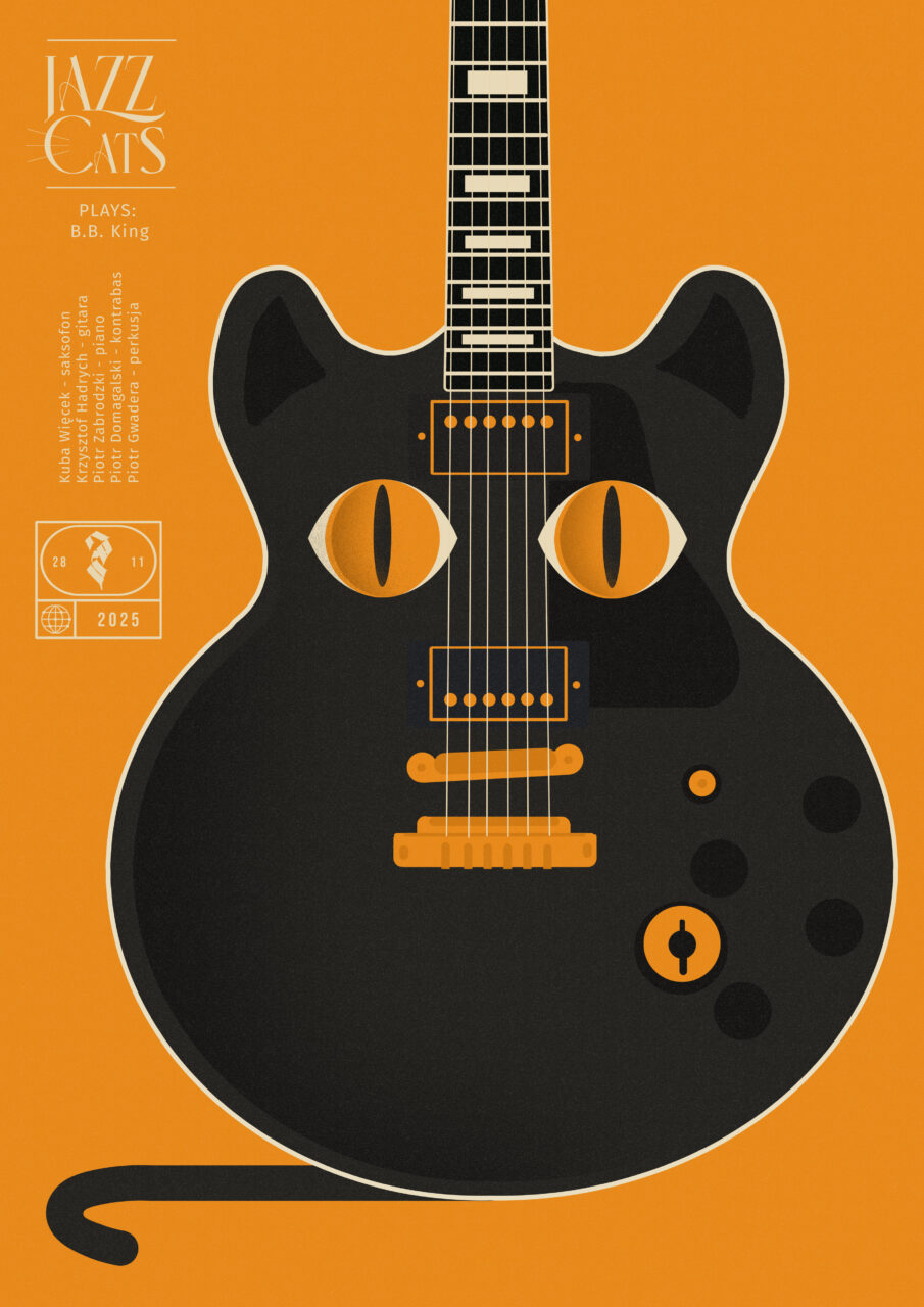 Kolejnym bohaterem Jazz Catsów będzie B.B. King – legenda bluesa, gitarzysta i wokalista, którego styl na zawsze wpłynął na muzykę jazzową i rozrywkową XX wieku. Nazywany „Królem Bluesa”, zyskał światową sławę dzięki charakterystycznemu brzmieniu gitary Lucille oraz niezwykłej ekspresji, z jaką łączył emocję i technikę. Jego muzyka, pełna pasji, melancholii i autentyczności, inspirowała pokolenia artystów – od jazzmanów po rockowych gigantów. B.B. King potrafił nadać bluesowi nowy wymiar, czyniąc go uniwersalnym językiem emocji i wolności.