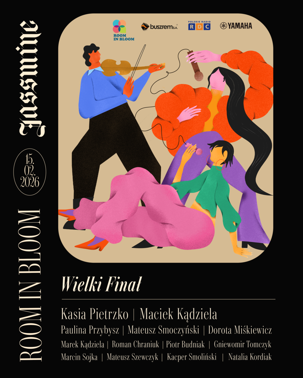 Wielki finał Room in Bloom to jednorazowe, niepowtarzalne wydarzenie, będące kulminacją idei twórczych spotkań bez barier Uważnego słuchania i wspólnoty, która narodziła się podczas całego cyklu. 15 lutego scena Jassmine stanie się przestrzenią spotkania artystów reprezentujących różne estetyki, temperamenty i muzyczne języki – połączonych improwizacją, otwartością i jazzowym rodowodem.
