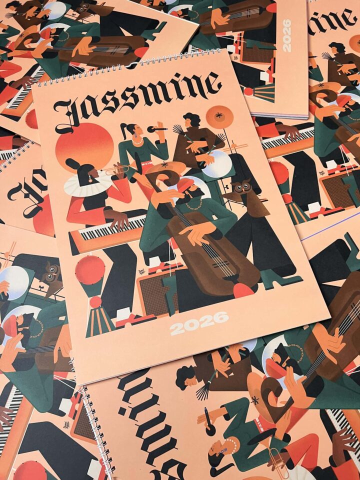 Każdy kalendarz zawiera 12 ilustracji Dawida Ryskiego – starannie wyselekcjonowanych jassminowych plakatów na każdy miesiąc. Wydrukowany jest na papierze 300 g. Każdy egzemplarz posiada indywidualny numer, z uwagi na mocno limitowany wydruk.